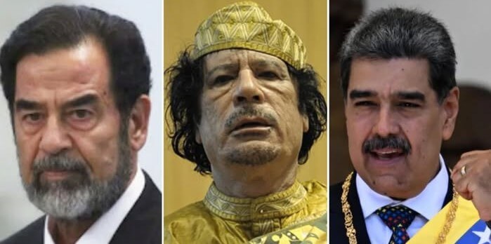 Os Estados Unidos da América invadiram esses três países, Iraque, Líbia e Venezuela e capturaram os seus respectivos presidentes, nomeadamente: Saddam Hussein, em 2003; Muammar Al-Gaddaf, em 2011 e Nicolas Maduro, em 2026.