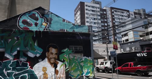 WAGNER MOURA É HOMENAGEADO COM MURAL EM PORTO ALEGRE APÓS VITÓRIA NO GLOBO DE OURO
