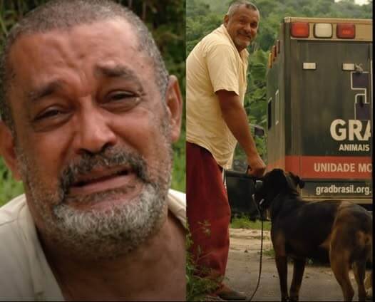 HOMEM QUE PERDEU TUDONAS CHUVAS RESGATA SEU CÃO E EMOCIONALMENTE ABALADODIZ QUE TERÁ QUE DOÁ-LO