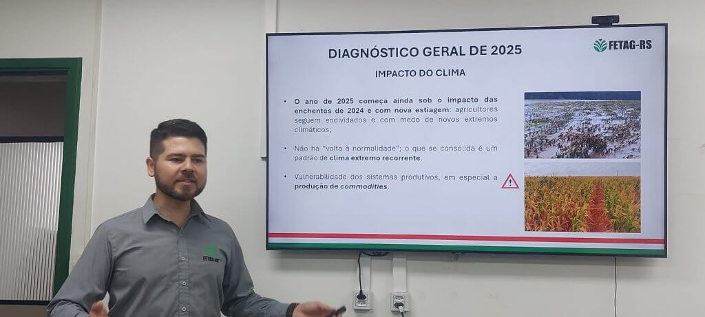 Entre os temas apresentados, estiveram os impactos climáticos previstos com a intensificação do fenômeno La Niña, as dificuldades enfrentadas por cadeias produtivas como trigo, leite e arroz, a queda nos preços e a consequente perda de renda das famílias agricultoras. A FETAG-RS também reforçou a preocupação com a redução do acesso ao Pronaf, que registrou uma queda de 29% nas operações, além das limitações do seguro rural e do Proagro, que atualmente cobrem apenas 10% da área agrícola do estado.