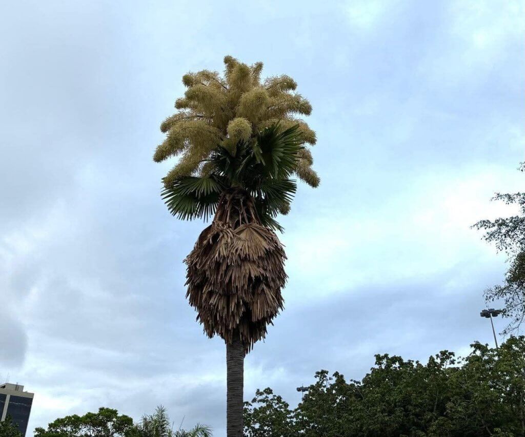 Falamos de uma planta, mais precisamente da palmeira Talipot (Corypha umbraculifera), nativa do sul da Índia e do Sri Lanka, florescendo no Parque Burle Marx (também chamado Aterro do Flamengo, um dos maiores parques urbanos, no Rio de Janeiro.