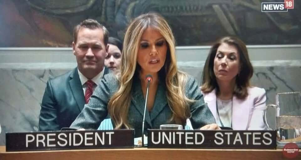 Pois Melania Trump, ela mesma, presidiu na segunda-feira, 2/3, reunião do Conselho de Segurança da ONU, em Nova York, em nome do governo dos Estados Unidos e do marido.