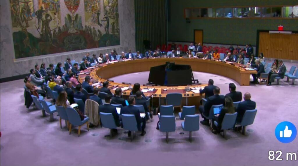Reunião do Conselho de Segurança das Nações Unidas, ontem, em Nova York: crítica aos EUA – (crédito: John Lampaski/AFP)