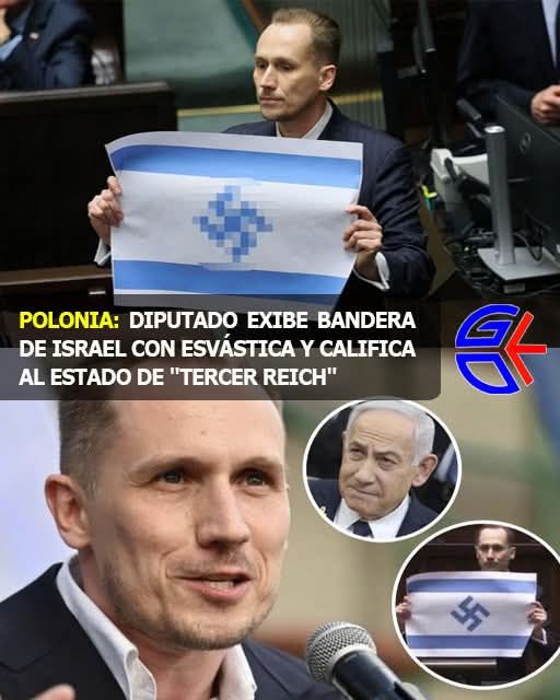 ESCÂNDALO NA POLÔNIA: DEPUTADO EXIBE BANDEIRA ISRAELENSE COM SUÁSTICA E CHAMA O ESTADO DE “TERCEIRO REICH”