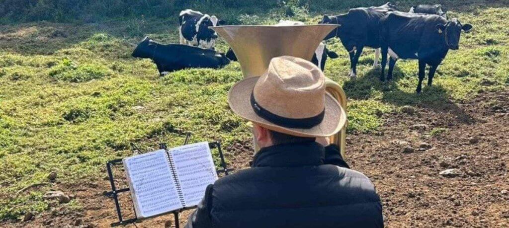 Aparentemente, não é apenas o homem que aprecia a música. Osvaldo Filho, reconhecido pelo trabalho pioneiro de vendas digitais de queijos artesanais de Alagoa, cidade no Sul de Minas e, desde o início do último ano, produtor de queijos artesanais, começou recentemente a tocar tuba para suas vacas.