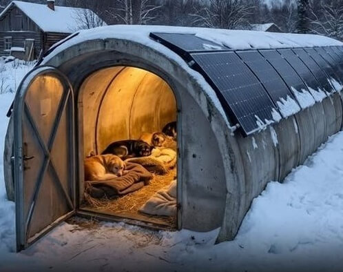 Eles criaram estufas aquecidas pelo sol simples, silenciosas e milagrosas. Feitas com materiais que guardam o calor do dia e o devolvem devagarinho à noite, esses abrigos se transformam em pequenos oásis de conforto no meio do frio.